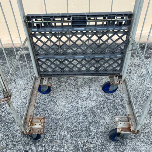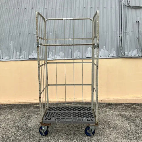 中古 カゴ台車 ワコー W850xD650xH1700 4輪自在 ストッパーあり