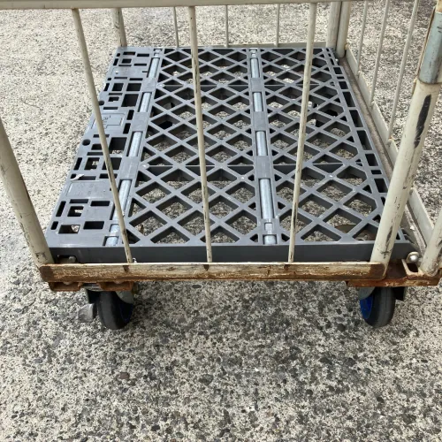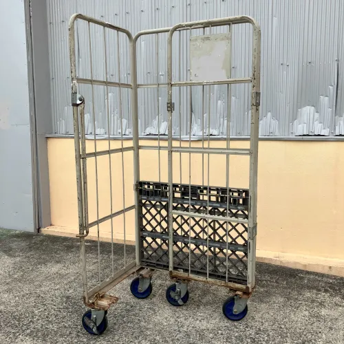 中古 カゴ台車 ワコー W850xD600xH1700 4輪自在 ストッパーあり