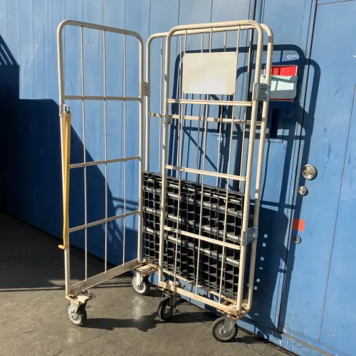 中古 カゴ台車 マキテック W850xD650xH1700 4輪自在 ストッパーあり