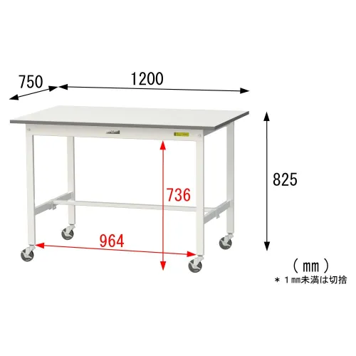 天板はRoHS2対応の低圧メラミン天板で表面硬度が高く摩耗に強いため、物流現場での梱包・検品・組立等の軽作業におすすめです。