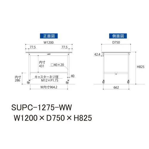 【新品(送料込み)】 作業台 山金工業 SUPC-1275-WW W1200×D750×H825 本州・四国・九州エリア対象