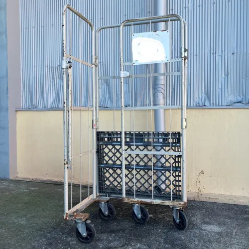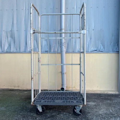 中古 カゴ台車 ワコー W850xD650xH1700 4輪自在 ストッパーあり