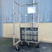 中古 カゴ台車 ワコー W800xD600xH1700 4輪自在 ストッパーあり
