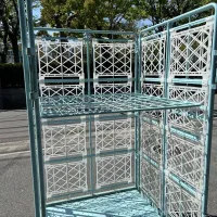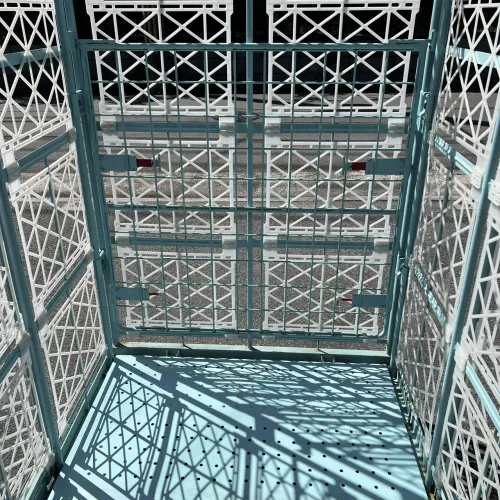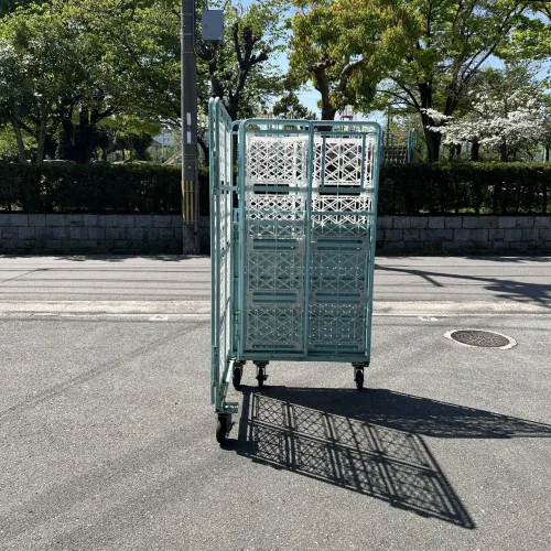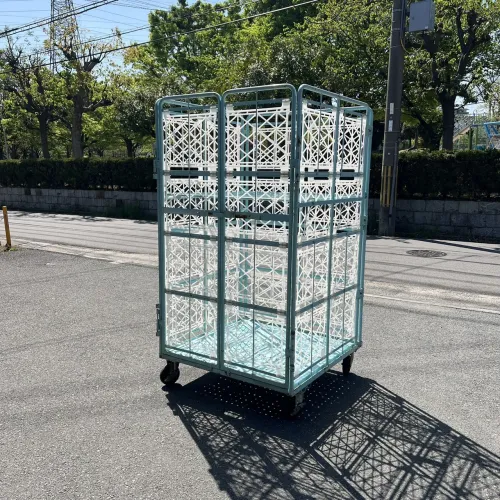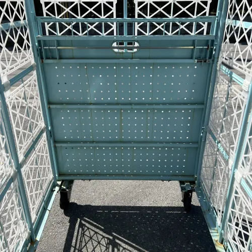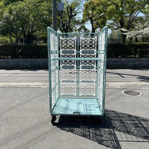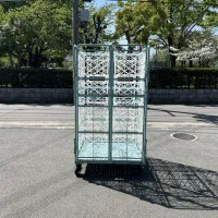 中古 カゴ台車[観音扉&中間棚付] W1100xD1100xH2000 4輪自在 ストッパーあり
