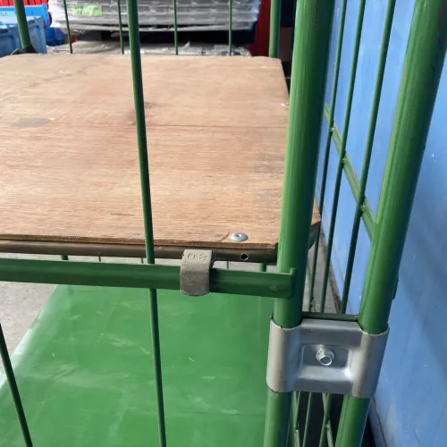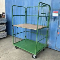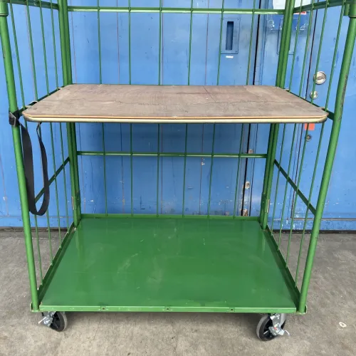 中古 カゴ台車[観音扉&中間棚付] W1100xD1100xH2000 4輪自在 ストッパーあり