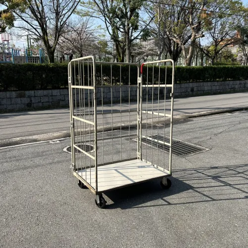中古 カゴ台車 ワコー W1000xD730xH1700 4輪自在 ストッパーあり