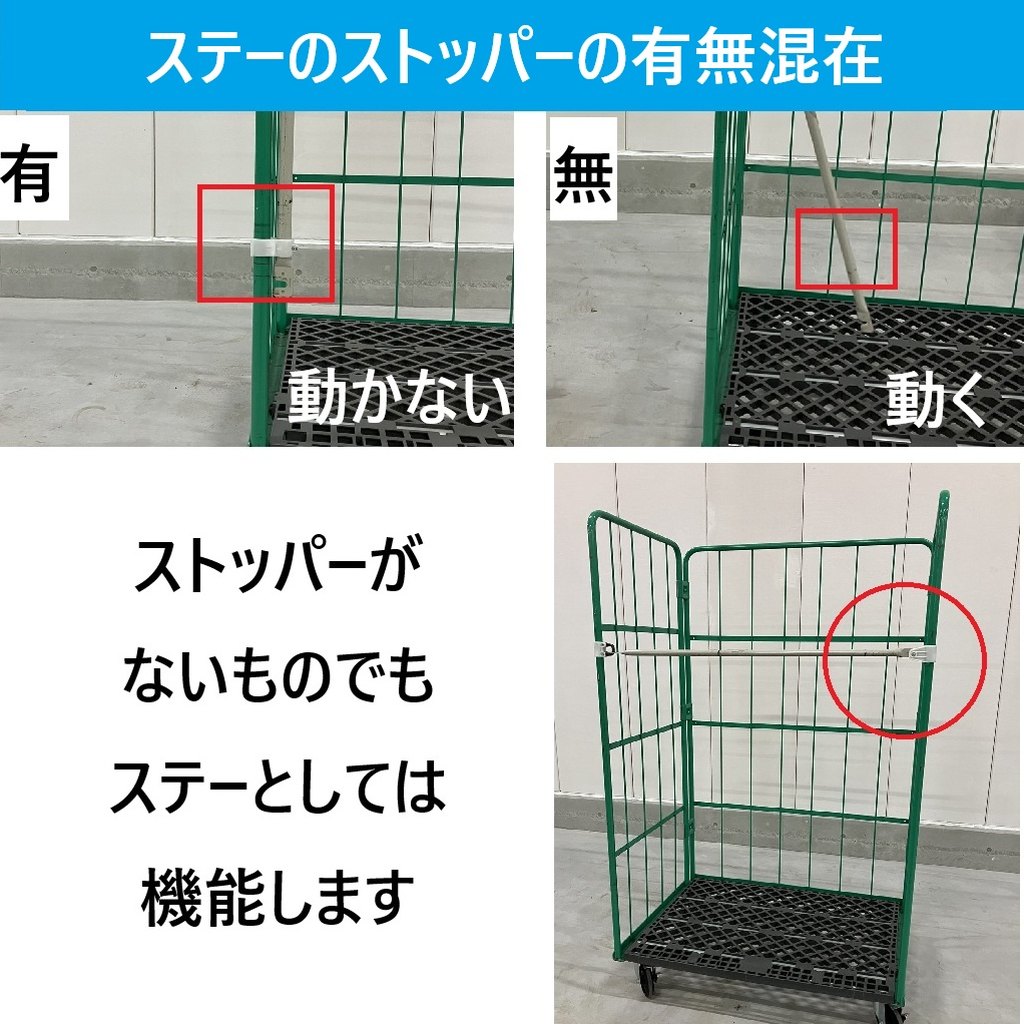 中古 カゴ台車[ステー無し] W1100xD800xH1700 4輪自在 ストッパーあり